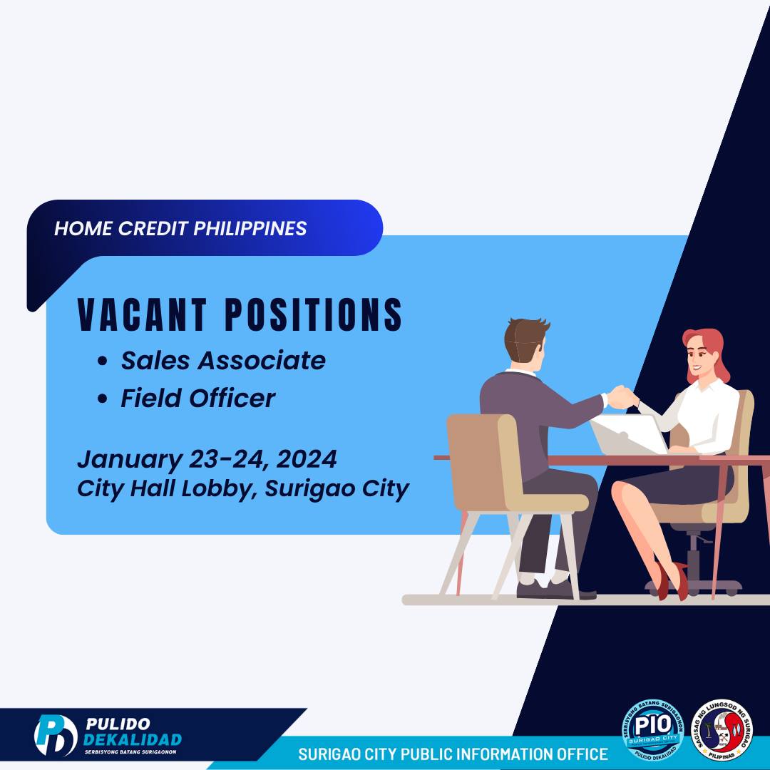 The City Government of Surigao, through PESO Surigao City, is excited to announce job openings for various positions in partnership with Home Credit PH.
