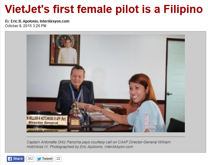 VietJet's first female pilot is a Filipino